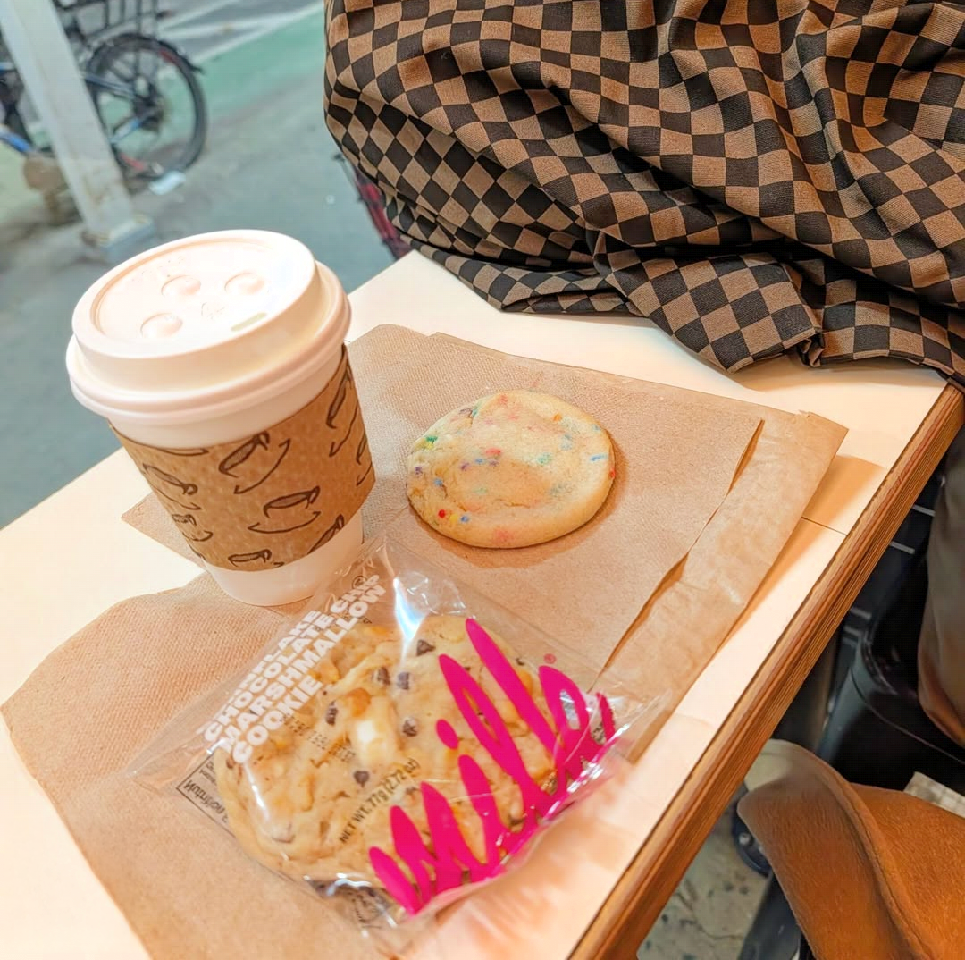 With a few more meetings under my belt and the fact that is was 18 degrees outside, I popped in for a rare pick me up at Milk Bar with their Cereal Milk Matcha Latte (available in hot or cold)and a Confetti Cookie. I also brought home their Cornflake Chocolate Chip Marshmallow Cookie as Paul is always a fan of that.
