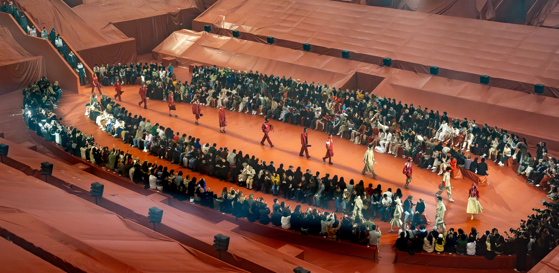 This season, she focused on the brand’s tech heritage which blended waterproof, functional, and protective silhouettes that have a 1980-inspired high fashion sportswear aesthetic. The runway show which was named “Washed Out Match was actually shown at Roland-Garros stadium (Philippe Chatrier). The inspiration for the show was inspired by a 1923 rain-delayed tennis match played by René Lacoste in Deauville.